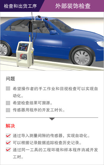 在部品种类繁多、工序复杂的汽车整厂、对应多车型混同生产、提高生产速度以及品质、考虑作业者的安全,注重环境等多种课题正需要被解决。 “e-F@ctory”通过共用平台以及与各类合作伙伴协作,提供优化的解决方案,为解决客户问题提供支持。