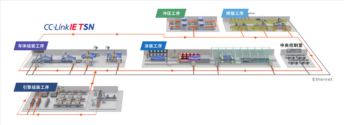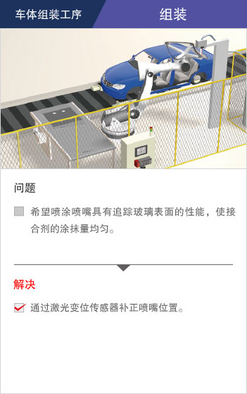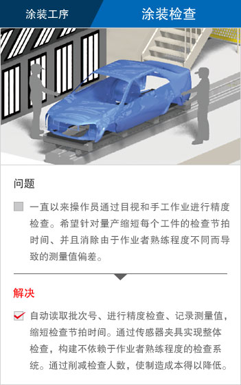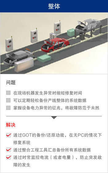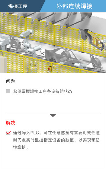 在部品种类繁多、工序复杂的汽车整厂、对应多车型混同生产、提高生产速度以及品质、考虑作业者的安全,注重环境等多种课题正需要被解决。 “e-F@ctory”通过共用平台以及与各类合作伙伴协作,提供优化的解决方案,为解决客户问题提供支持。