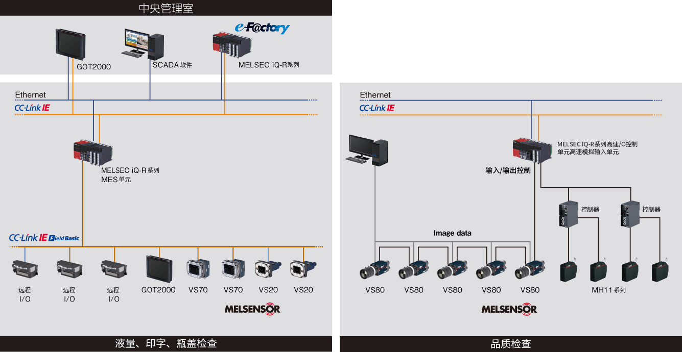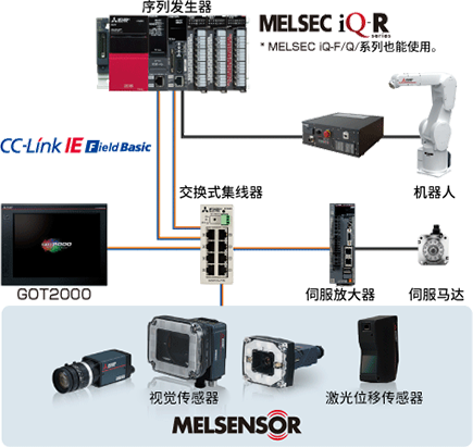 MELSENSOR支持CC-Link IE现场网络Basic,可编程控制器的工程工具设定、监控。通过视觉传感器的自动检测、工具协作功能,可以降低设计/启动/运用/维护的总成本。