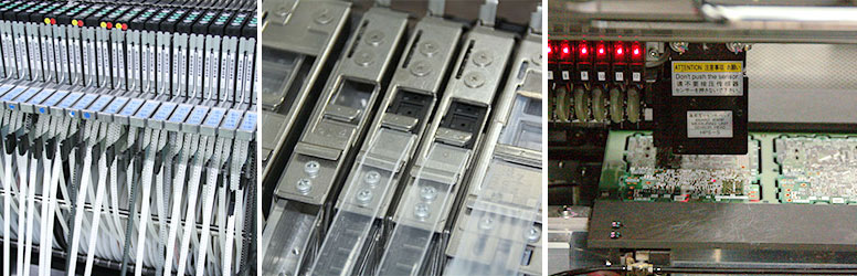生产可编程控制器和显示器的名古屋制作所E4楼。其6楼生产层中负责实施电子零部件的表面封装作业。这是在基板正反两面搭载1000个以上电子零部件的作业。几乎所有零部件的搭载作业都实现了自动化,基板的焊糊印 刷、搭载零部件的取出和基板的封装、电炉加热等一系列封装工序组成了一条生产线。