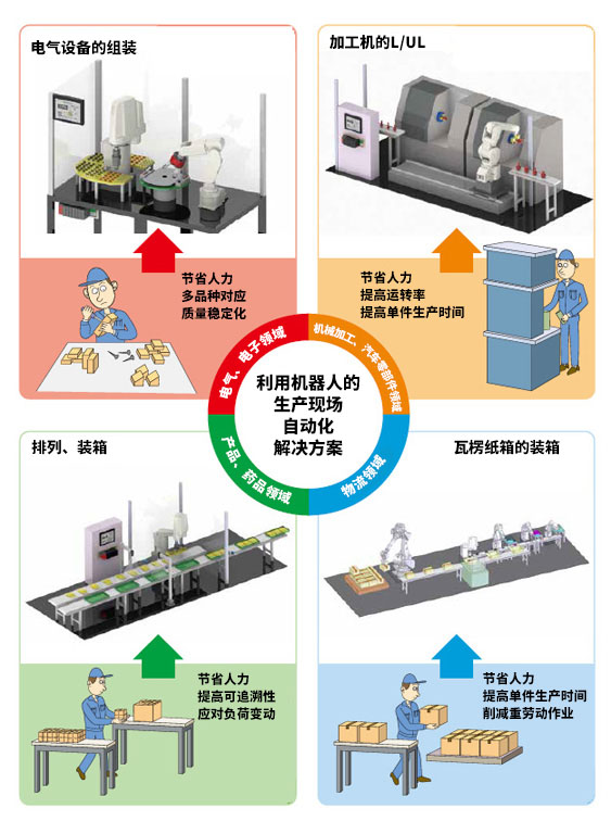 利用机器人将生产现场自动化,兼顾生产率提高和整体成本削减。