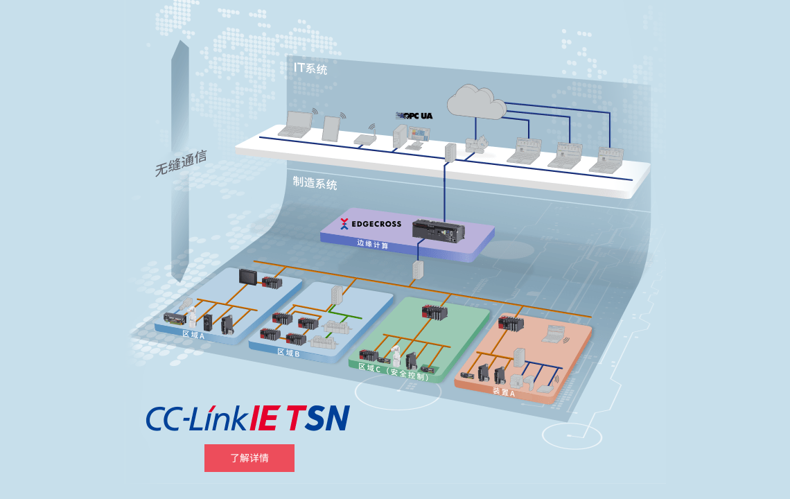采用时间敏感技术TSN,通过循环通信,在确保实时性控制的同时,可以使IT系统和信息通信并存的网络。可使用各种设备构建灵活的系统,由于具有优越的维护便利性,适用于构建工厂整体的IIoT基础设施。