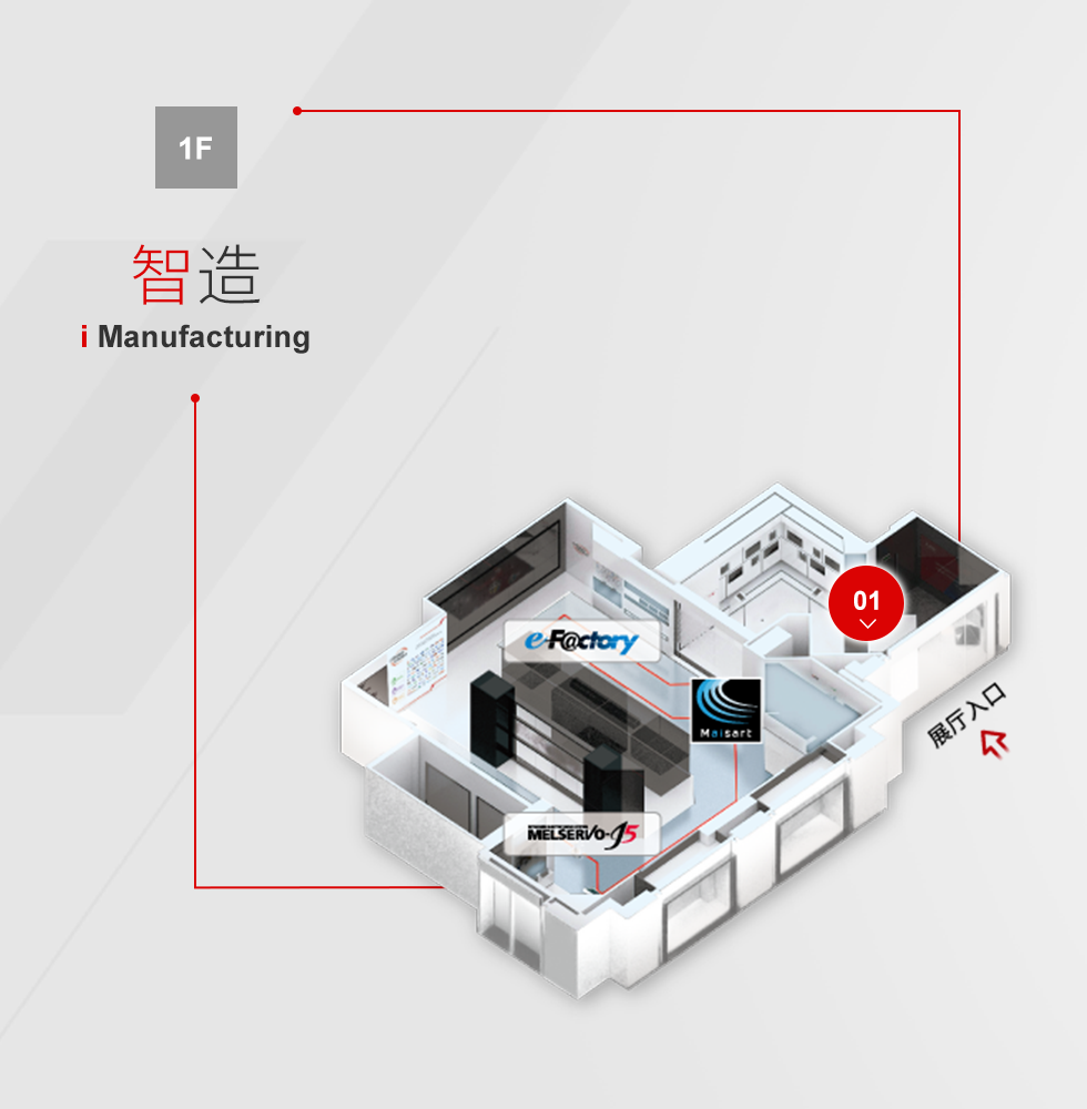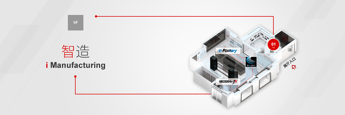 三菱电机自动化中心1F-3F,占地约1500平方米分为“智造、智创、智学、智用”四个展区